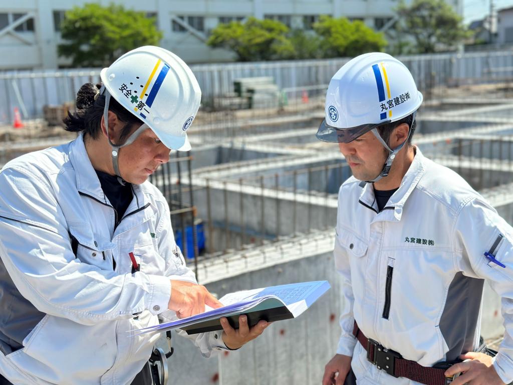 | 先輩メッセージ | Aさん:4人の子供を育てる母ですが、会社全体で理解があり、社員1人1人の声が上層部まで届きやすく、人が温かいので、家庭を守りながら働けています。女性だから・・・経験が無いから・・・などは関係ありません!賑やかで楽しく、やる気と頑張りは必ず認めてくれる会社です!Bさん:私は協力会社として関わったことがきっかけで丸宮建設のことを知り、施工管理の仕事に興味を持ち入社しました。諸先輩方の知識や経験が豊富で分かりやすく指導してもらえるので、学びやすい環境で自身のレベルアップを実感しています。また、行事やイベントをとても大切にしているので親睦を深めることのできる場も多くあり、とても魅力的な会社です! |