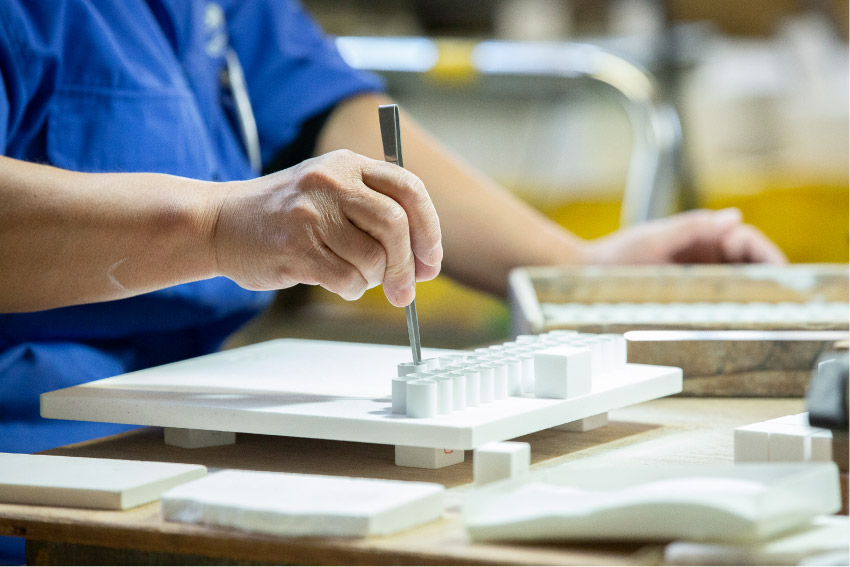 | 事業内容 | セラミックスに関する総合サービスを提供できるよう、原料の配合から「成形・焼成・加工・検査」といった、製品が完成するまで一連の工程を自社内部にて行っております。 |